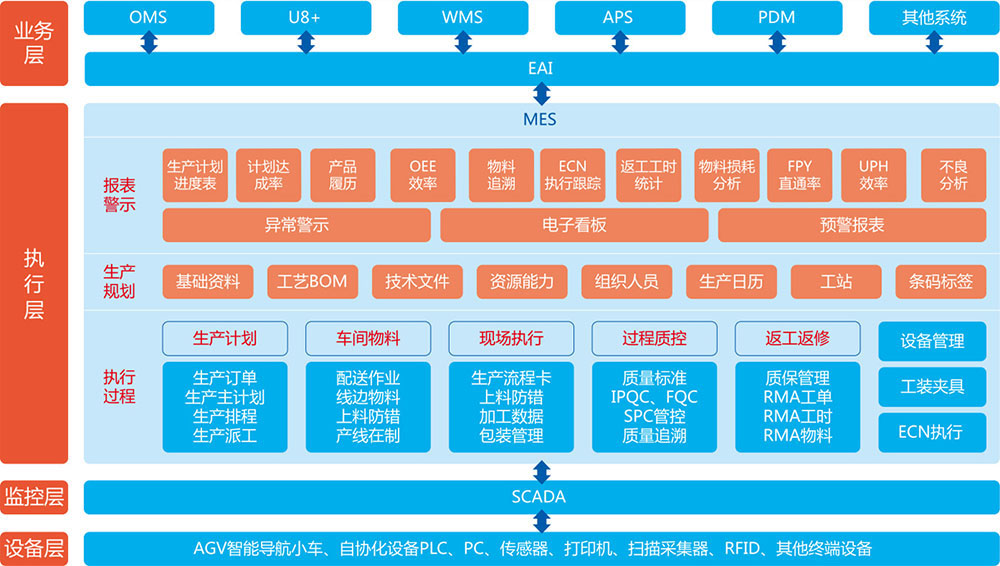 | 兼容主流的 CNC、PLC、种种智能终端 | 围绕生产焦点,,,,,收罗、传输、存储、管理工业大数据 | 以MES系统为焦点,,,,,实现智能排产,,,,,提高职员、装备、仓储效率 |